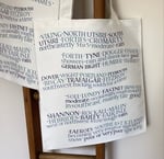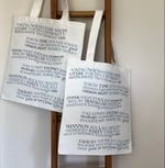 This Shipping Forecast tote bag was printed and sewn in the UK using environmentally-friendly water-based inks. It's made of a sturdy 10oz canvas and measures approximately 42cm high x 38cm wide. The handles are around 58cm so that it can be carried by hand or over the shoulder. The design appears on both sides.