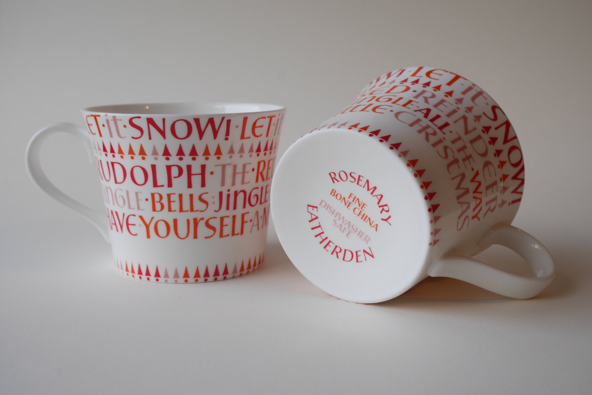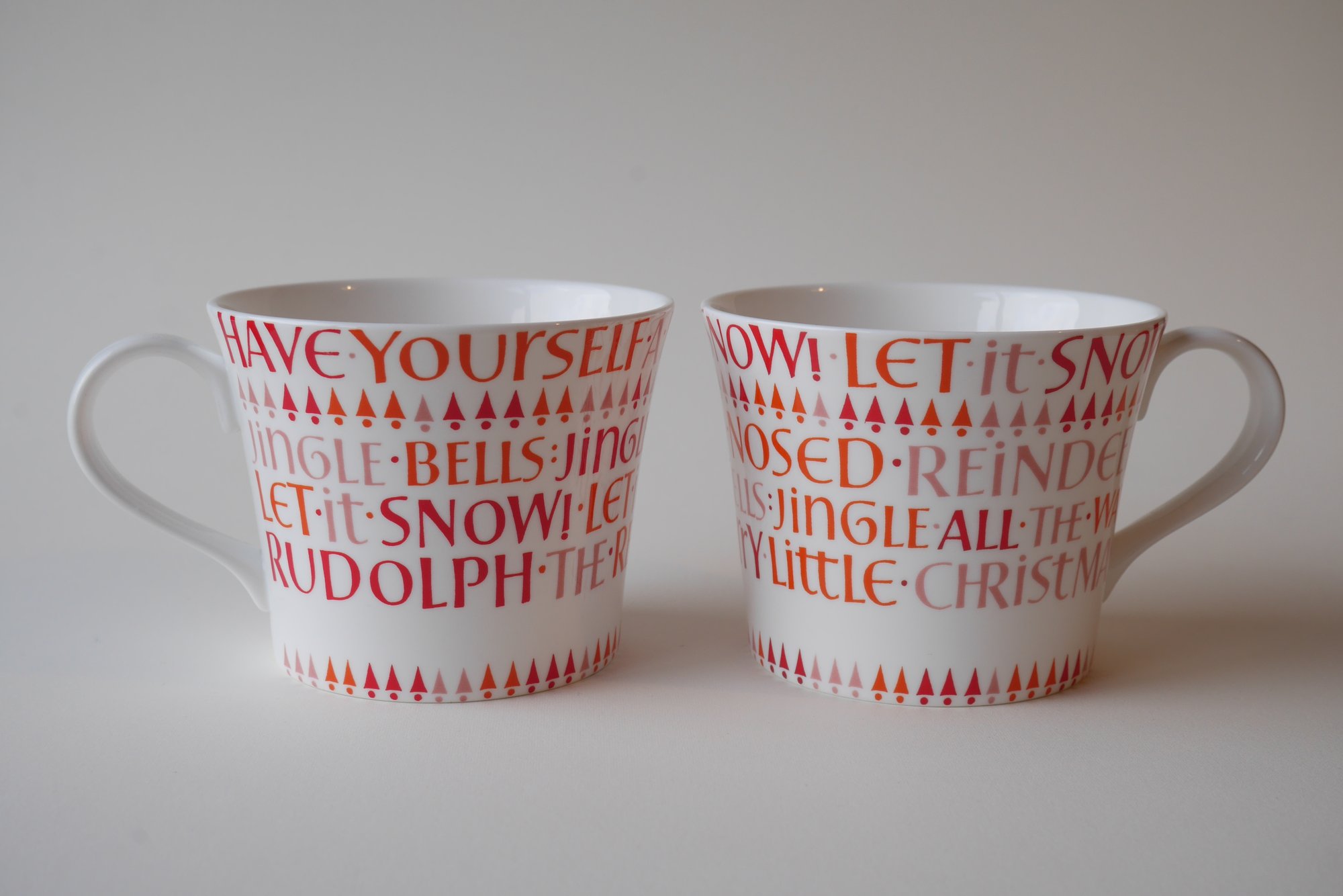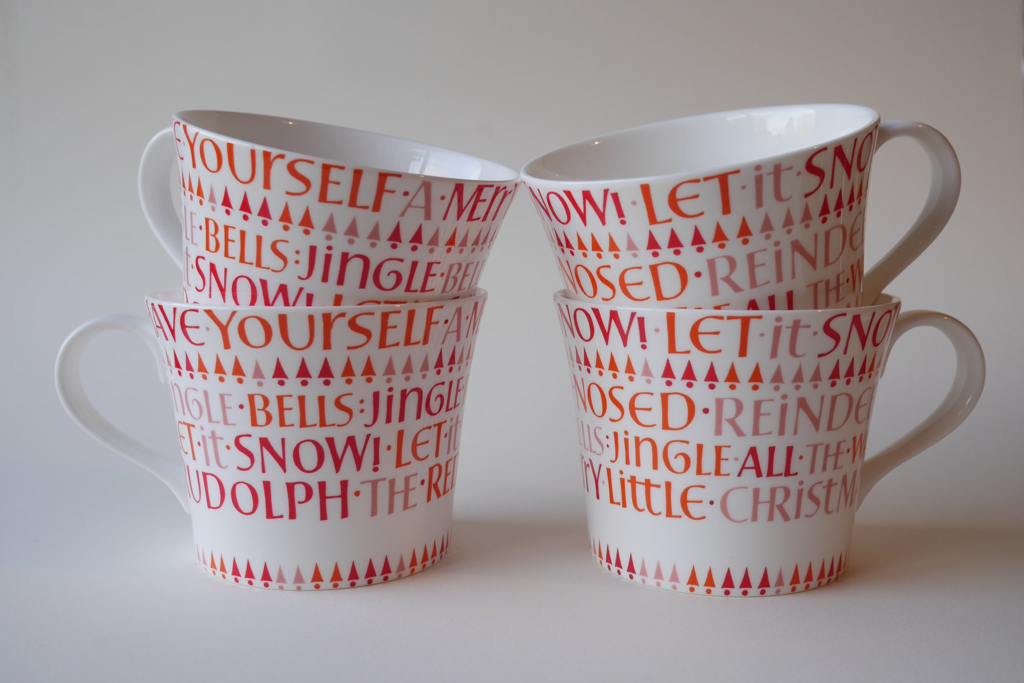Both mugs feature the same four festive song titles, but in a different order. Each individual letter of the original artwork was hand-painted by me in Sussex.